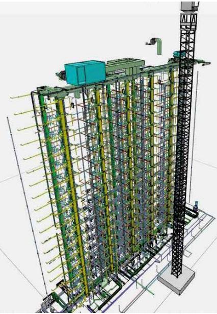 功能豎管位于混凝土核心筒中。
