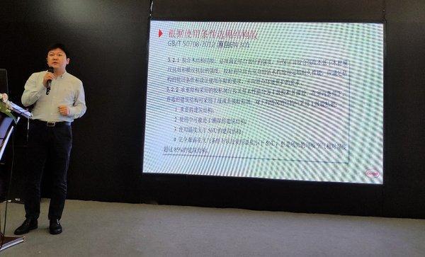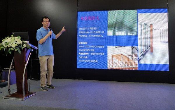 同濟大學土木工程學院建筑工程副教授張盛東先生的演講讓現場觀眾了解了木結構建筑的相關防火知識。張教授談到國外的一項研究表明不同材料建成的建筑與火災發生的概率無關。在消防系統中,自動噴淋是最好的防火手段之一,對建筑本身來說,在設計時要滿足規范中防火的要求,輕型木結構包覆防火石膏板來達到防火目的,而重型木結構是根據大斷面木材高溫下炭化緩慢和速度較恒定的特點來達到防火性能要求。
